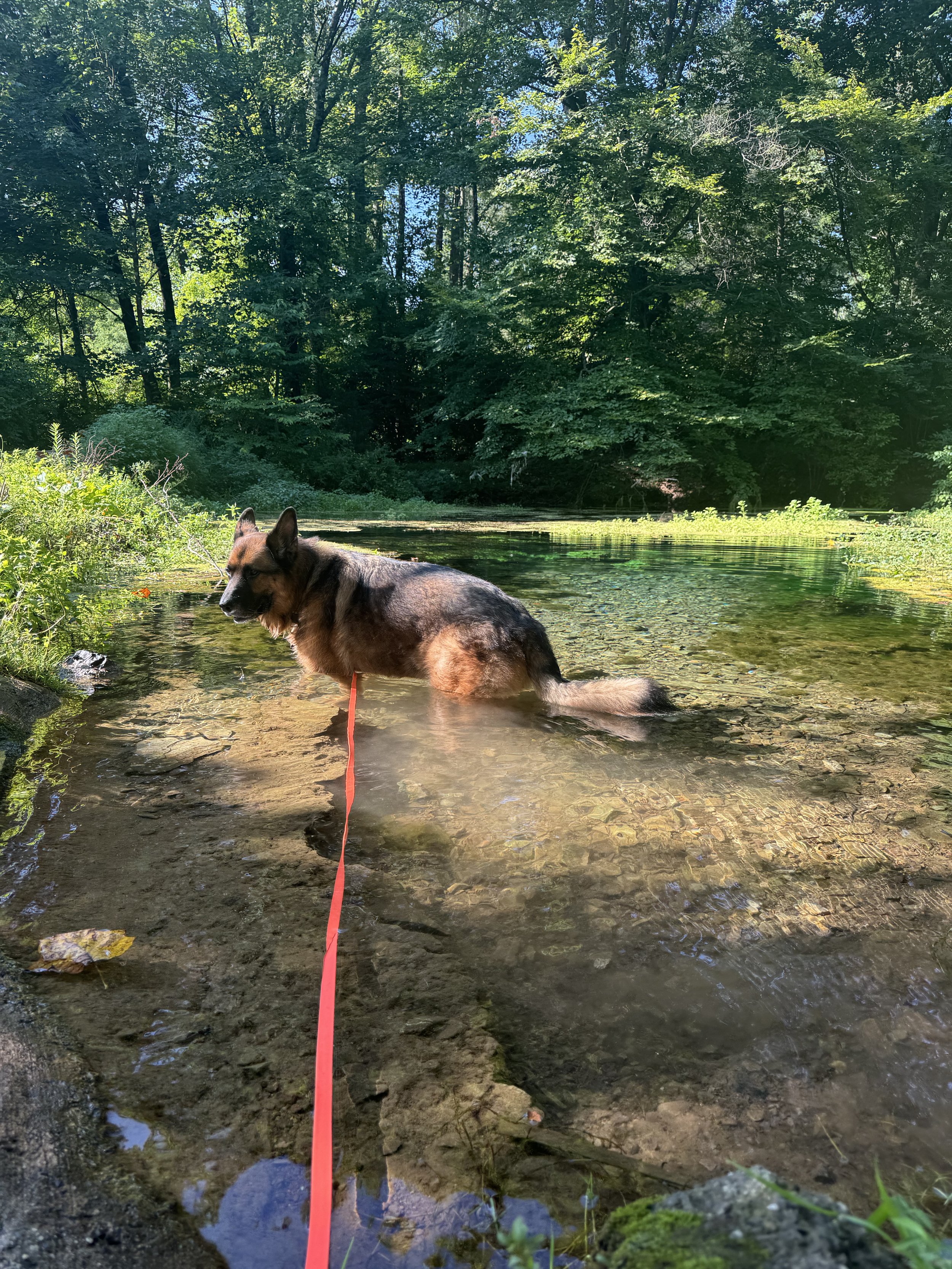 We head into nature whenever possible, often including creeks, streams, and safe water spots where dogs can splash, cool off, and just be dogs. Each hike includes pickup and drop-off, fresh water, treats, and a quick clean-up if your pup comes back muddy or wet. They will return home happy, refreshed, and ready to relax.